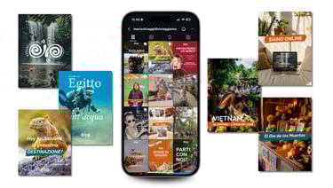 Per valorizzare Viviaggiamo sui social, abbiamo sviluppato una strategia di contenuti per Instagram e Facebook strutturata su tre filoni: educativo, per sensibilizzare al viaggio responsabile; di branding, per raccontare eventi e identità del progetto; promozionale, per presentare i viaggi in catalogo. Uno stile pop e colorato, con scritte in sovraimpressione e caroselli coinvolgenti, rende il feed distintivo e riconoscibile, costruendo una community di viaggiatori consapevoli.